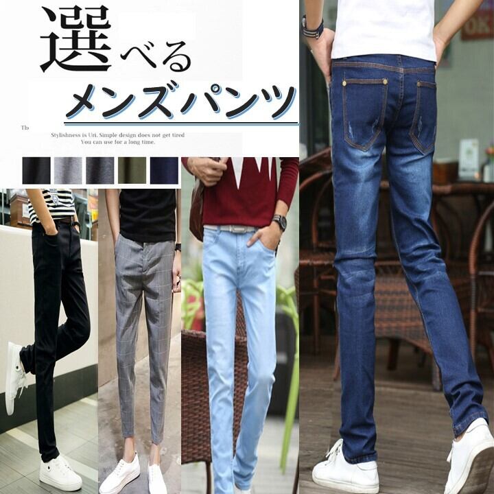 メンズ チノパン ジーンズ 選べる ジーパン スリム ストレッチ ボトムス カジュアル